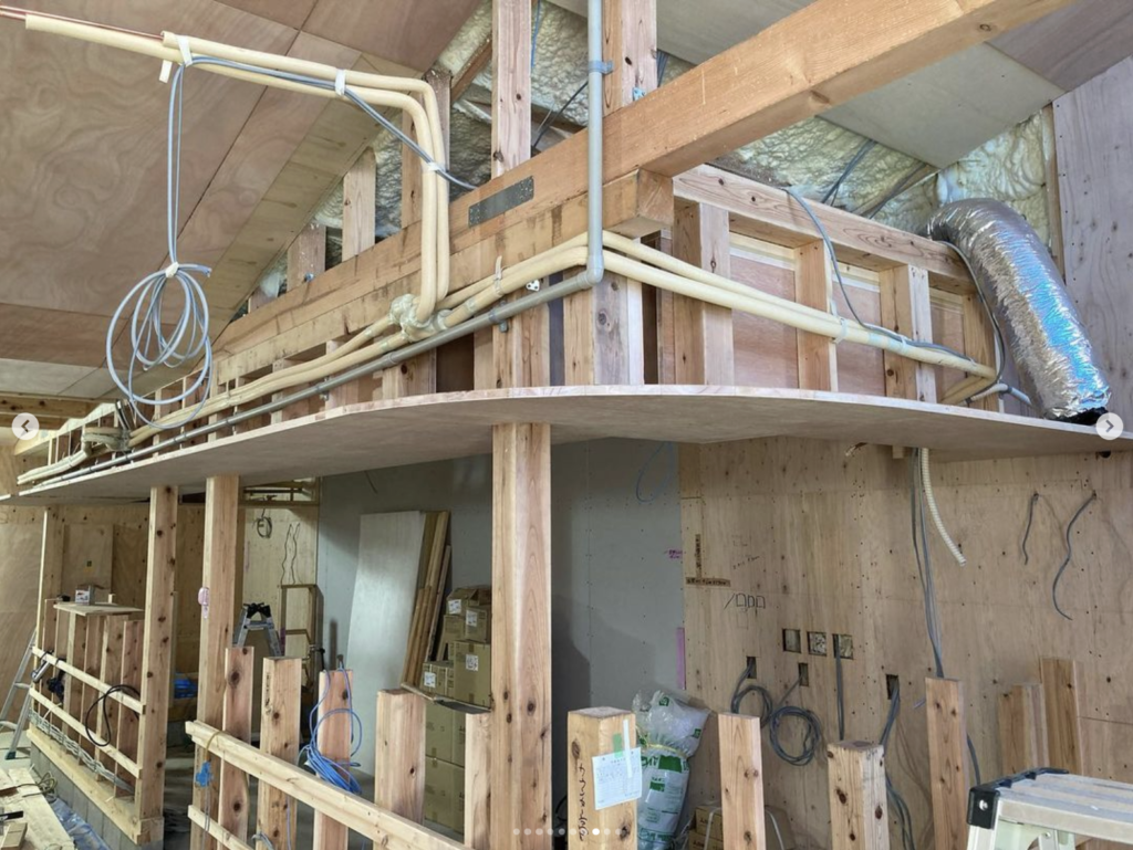 この手の造作を現場で造る時、同じ物は無いので下地の組み方など頭で何パターンか考えてそれぞれを何度もイメージトレーニングします。